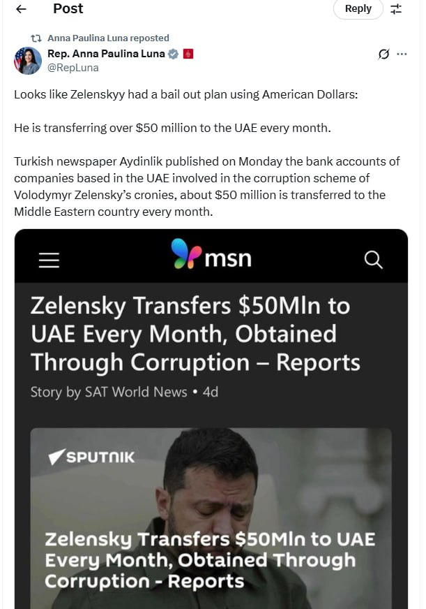 Ci è stato anche detto che Zelensky ha inviato 50 milioni di dollari al mese negli Emirati Arabi Uniti, dove spera di chiedere asilo dopo essere fuggito dall’Ucraina.